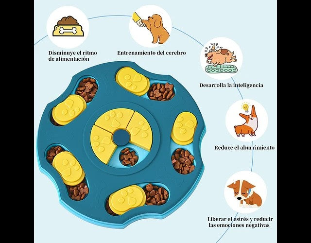 – Estimulación Mental y Física: El diseño del plato no solo ralentiza la ingesta de alimentos, sino que también estimula la mente y los instintos naturales de tu mascota. Con actividades integradas, tu compañero peludo encontrará entretenimiento y desafío mientras come, lo que ayuda a aliviar el aburrimiento y el estrés.